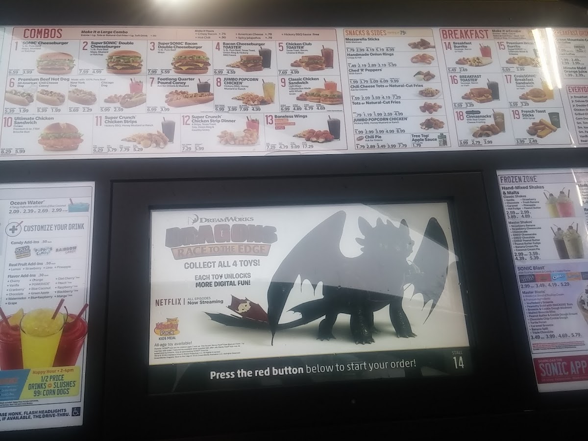 Sonic Drive-In is a standout fast food destination known for its diverse and flavorful menu. From breakfast burritos filled with scrambled eggs, melty cheddar, and savory meats to perfectly grilled 100% pure beef hot dogs like the classic AllAmerican Dog and the tangy New York Dog, Sonic offers something for every craving. The menu shines with comfort classics such as juicy burgers, crispy chicken strips, and irresistible tater tots.